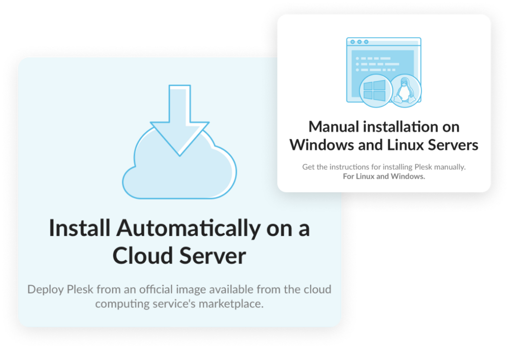 Plesk läuft auf jedem Server, on-premise oder in der Cloud (AWS, Azure, GCP, uvm.). Mit dem Plesk Web Installer kann Plesk ganz einfach und automatisch installiert oder deployed werden.