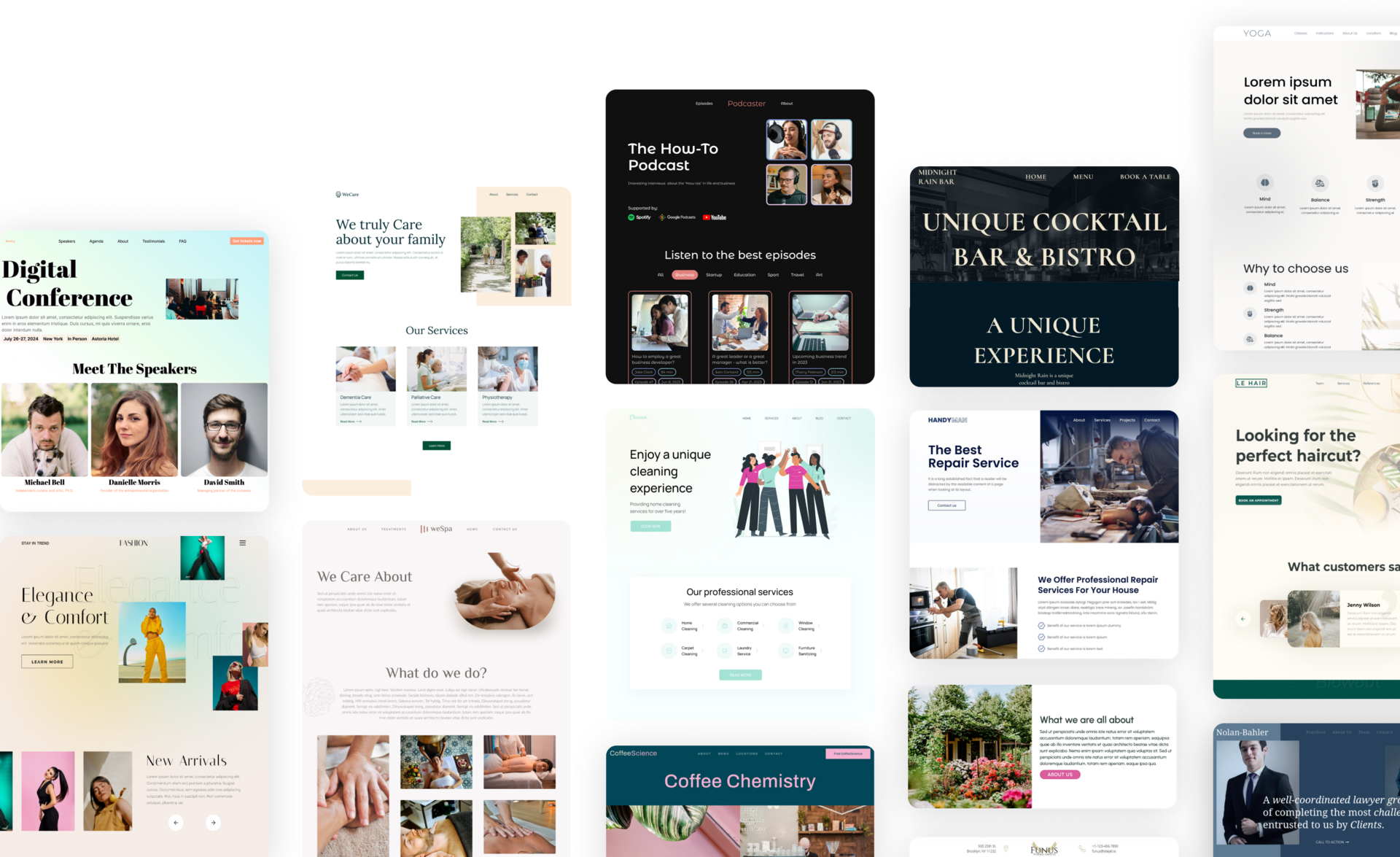 Erstelle die Traum-Website deines Kunden auf Basis unserer 140+ Designer-Templates. Durch unterschiedliche Elemente und Sections kannst du die Templates schnell und einfach an die Bedürfnisse deiner Kunden anpassen. Und das Beste: Du brauchst nicht coden - außer du möchtest.