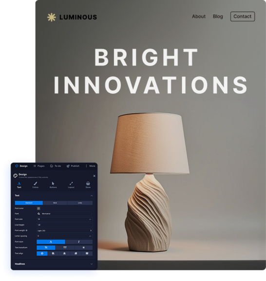Designing and building a website is usually a highly technical and time-consuming process. Not with our intuitive all-in-one web design platform. Our live editor allows you to see your design come to life in real time — changing the UI, fonts, sizing, or colors of specific elements or templates takes merely a matter of seconds.